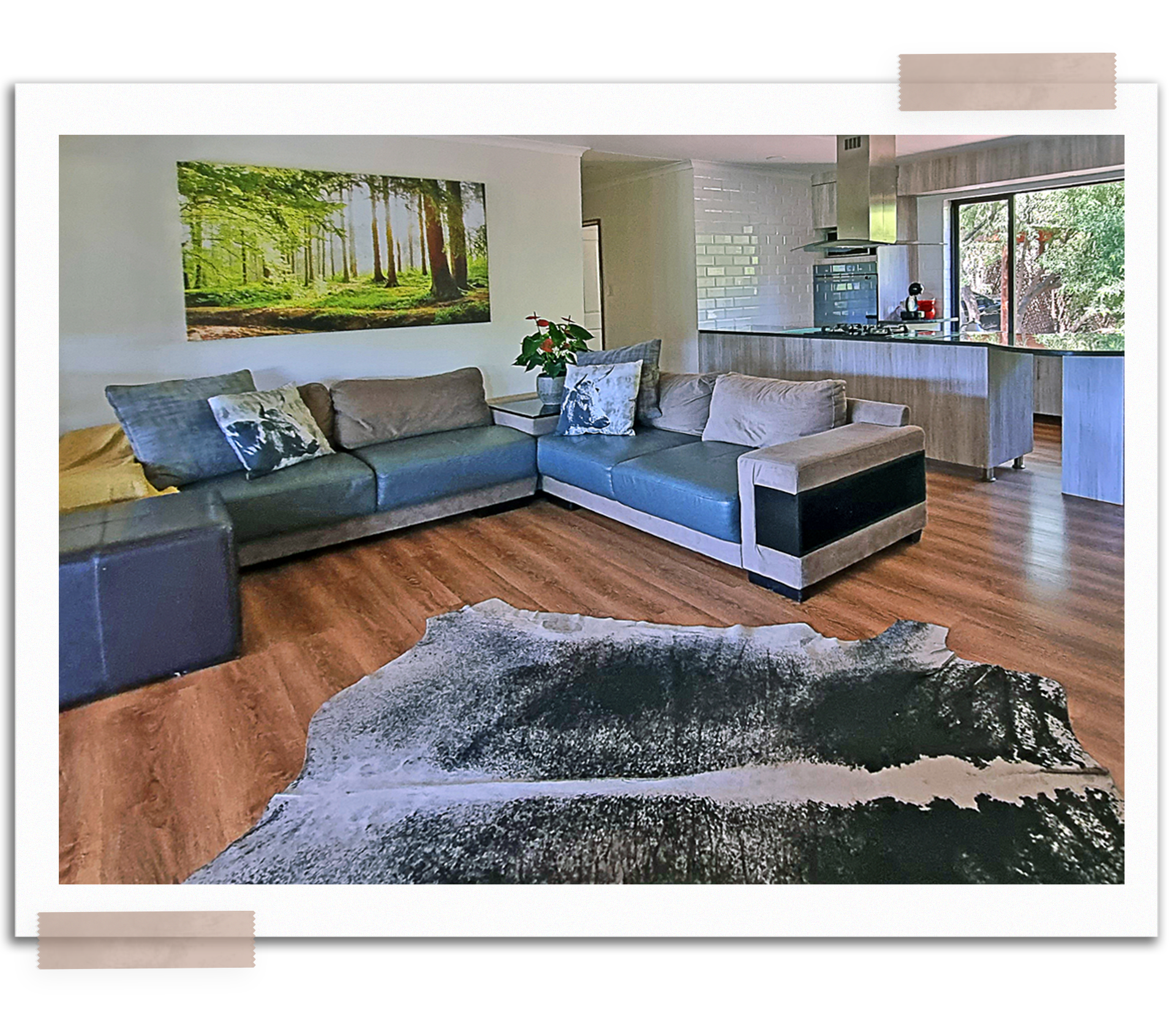The kitchen at Loskop Serene is not only practical but also beautifully designed. It has a laundry area with a dishwasher and washing machines, keeping the space tidy. The kitchen also has a large window with a stunning view, making it a pleasant place to start your day. It comes stocked with essentials for cooking and storing leftovers, making meal preparation easy. These thoughtful details ensure that guests have a seamless and memorable experience at Loskop Serene.