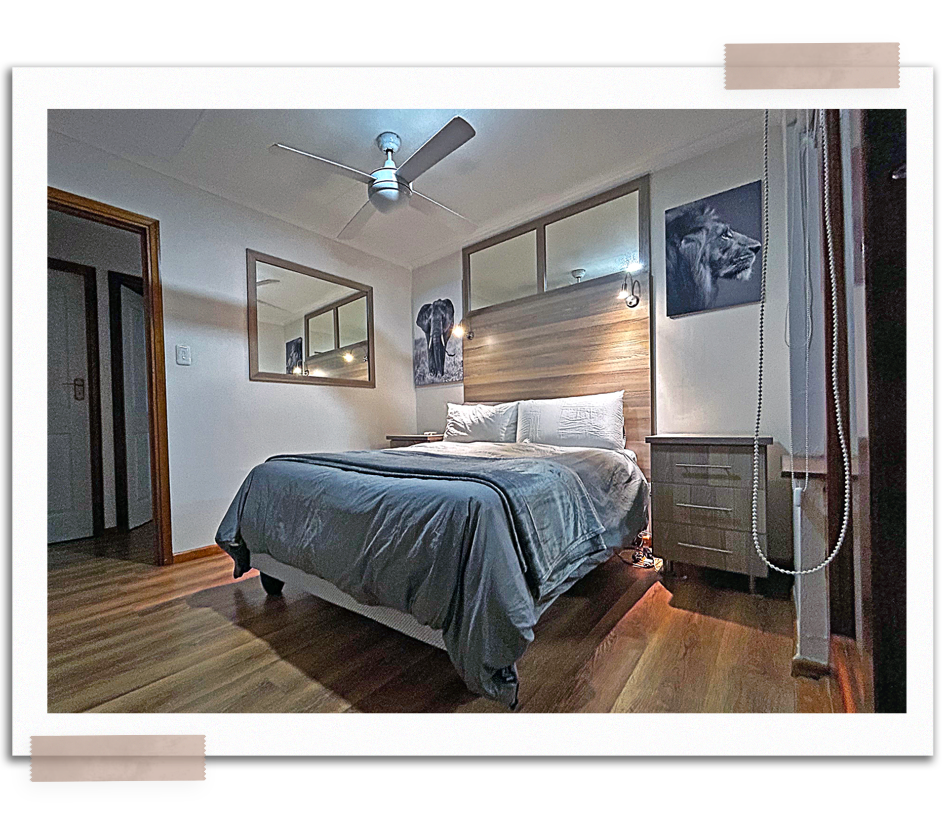 The second bedroom at Loskop Serene is a peaceful and cozy space. It has a comfortable double bed with high-quality linen. There are bedside tables for your belongings and a door that leads to the patio. The bedroom also has a ceiling fan for a cool breeze and ample closet space for storage. The view from the bed is beautiful, and the thoughtful design ensures a stress-free and enjoyable stay. It’s a perfect retreat for rest and relaxation.